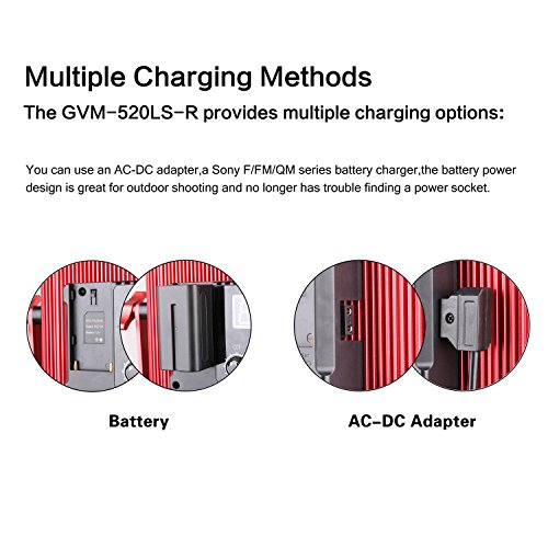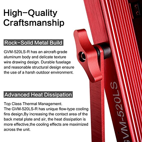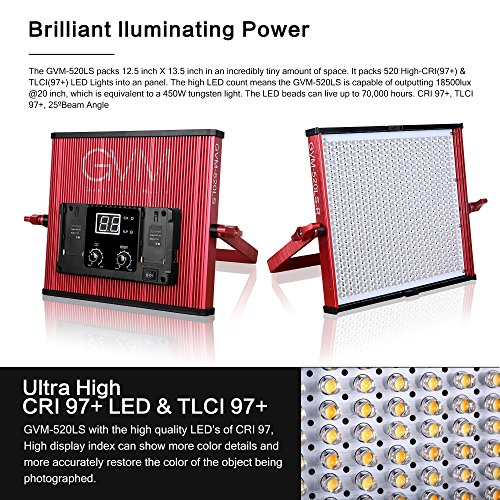 On YOUTUBE, search the keywords " GVM PANEL LIGHT." View more of the product's features GVM New LED Photography light for a better customer experience increase by digital display. The amazing brightness of video light with the perfect restore color of CRI 97 and TLCI 97 high display index. To make the video lighting have a more real, natural color and high color reproduction. Adjust the color temperature and brightness by twisting the knob. Adjust the color temperature range is from 3200k-5600k; Control the brightness between 10% and 100%. With High quality led bulbs life can reach 70,000 hours, can reach 18500lux at 20 inches and 6600lux at 40 inches. The Video lights has unique flow-type cooling fins design, By increasing the contact area of the back metal plate and air, the heat dissipation is more effective, the cooling effects are maximized across the unit. LED video light has an aircraft-grade aluminum body and delicate texture wire drawing design. Durable fuselage and reasonable structural design ensures the use of a harsh outdoor environment. U-sharp bracket design, it can rotate 355 degrees freely according to your shooting needs to achieve Multi-angle shooting for photography lighting. Come with a handbag for GVM LED Video Light kit.We specially designed a handbag to ensure that can be strong packing to protect your led video light from any possible damage.It's made of good materials and has a good protection.It's more portable and stored. Remark: Optional to purchase the "A-frame" soft diffuser or Barndoor : You can experience different soft light effects by using "A-frame" soft diffuser.and it's easy to set up.The light diffusion filter makes the lighting is not harsh, and the LED Photography lighting more suitable for children shooting, portrait shooting.The barn door will be a good aid to use during outdoor photography. Specification Model :GVM-520LS-R3L Bead: 520 lamp bead CRI: ≥ 97 TLCI: 97 Lumen:18500Lux/20inch Color temperature: 3200K-5600K Power: 30W Voltage: DC15V Battery output: DC 14.8V Input voltage: 110-220V power source: Power adapter or sony f550 f750 f960 li-ion battery (note: The battery is not included) size:12.5 x 13.5 x 3.2 inch package size:15.9 x 15.9 x 6.7inch Light weight: 4 pound package weight: 10 pound Package content 3 * LED video light 3 * Light stand 3 * Bracket soft filter 3 * Soft filter 3 * Power adapter 3 * Power cable 1 * LED video light kit handbag." 0 |