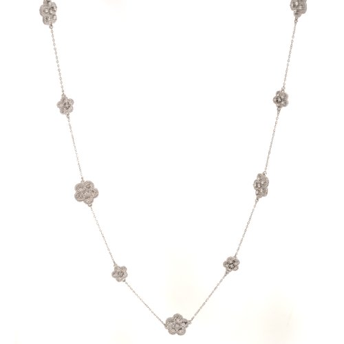 - Title : Stunning Silver Plated Clear Crystal Flower Station Necklace