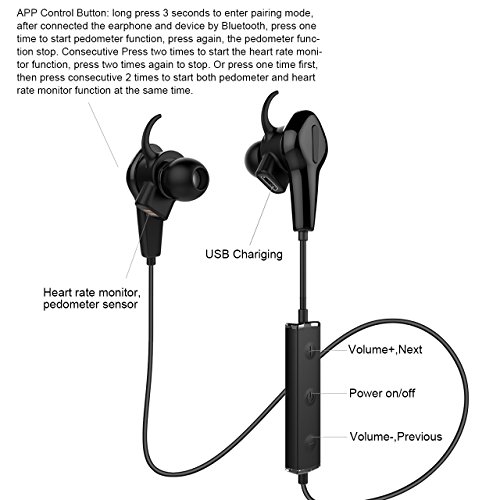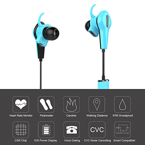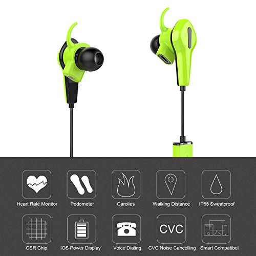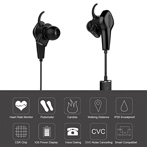NickSea Bluetooth Kopfhorer In Ear Wireless Sport Headset APP 520 Mobile Applikation Bluetooth 4.0 CSR8645 IP55 Herzfrequenz Schrittzahler Ohrhorer mit Mikrofon fur Android / iOS Smart Pho