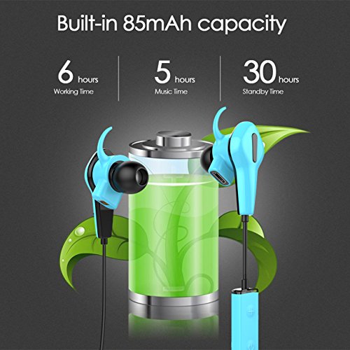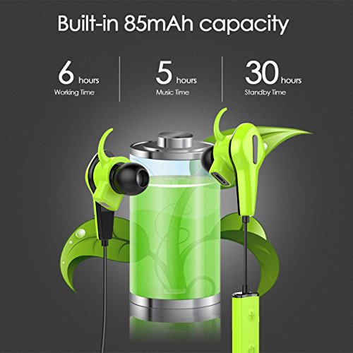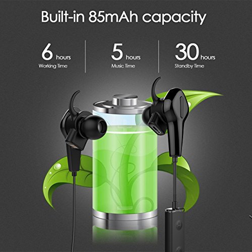 [Dauer Zeit & IP55 Wasserdicht] Mit eingebautem zylindrischer Schutzplatte 85mA Li-Polymer-Batterie, bietet es bis zu ca. 6 Stunden Arbeitszeit, bis zu ca. 5 Stunden Musikzeit und die Standby-Zeit ca. 30 Stunden. IP55 wasserdicht, staubdicht und stossfest Design ist nutzlich fur Sport.
