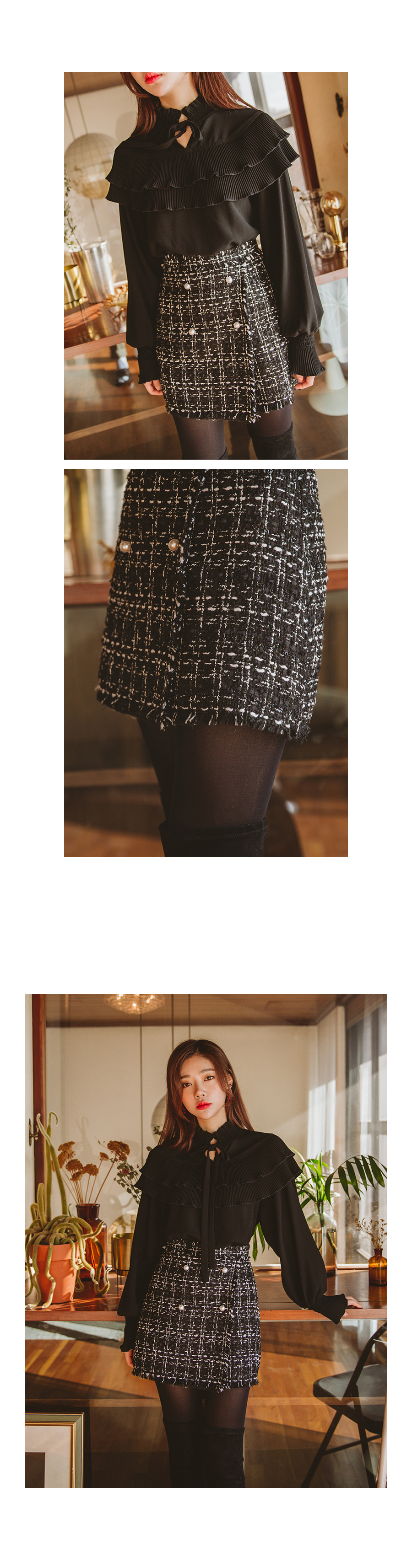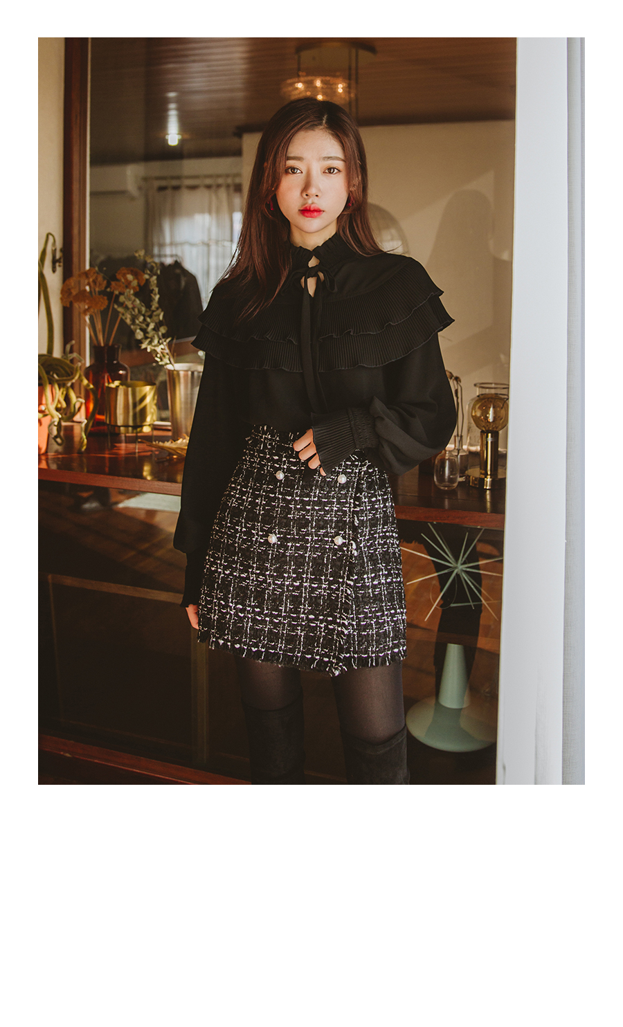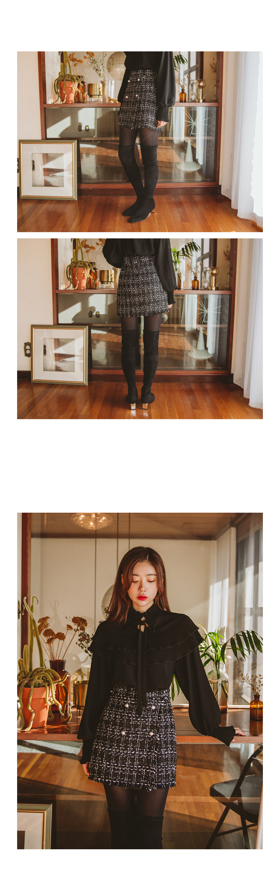 트위드 소재만으로도 충분히 룩에 포인트가 되어주어