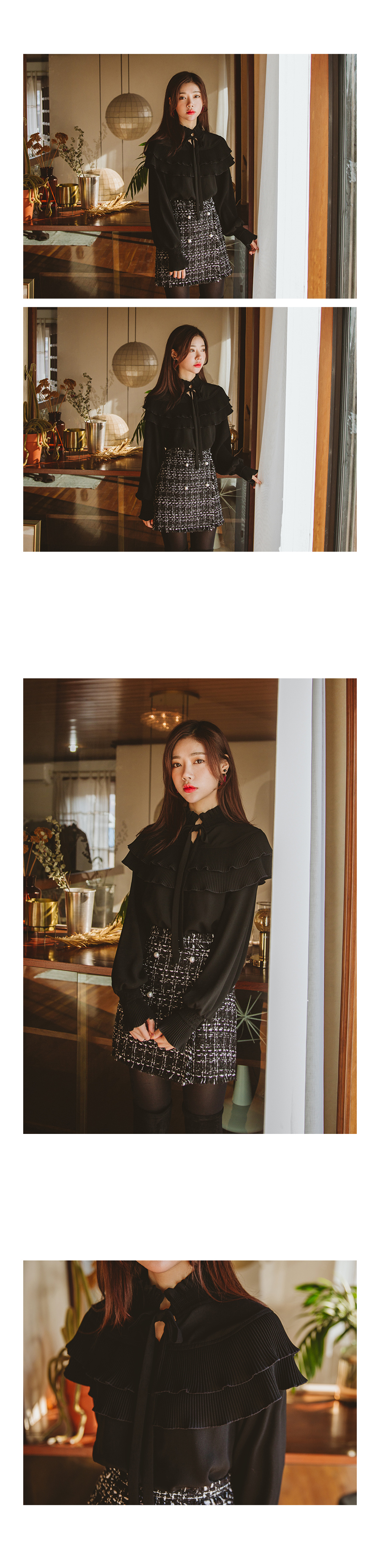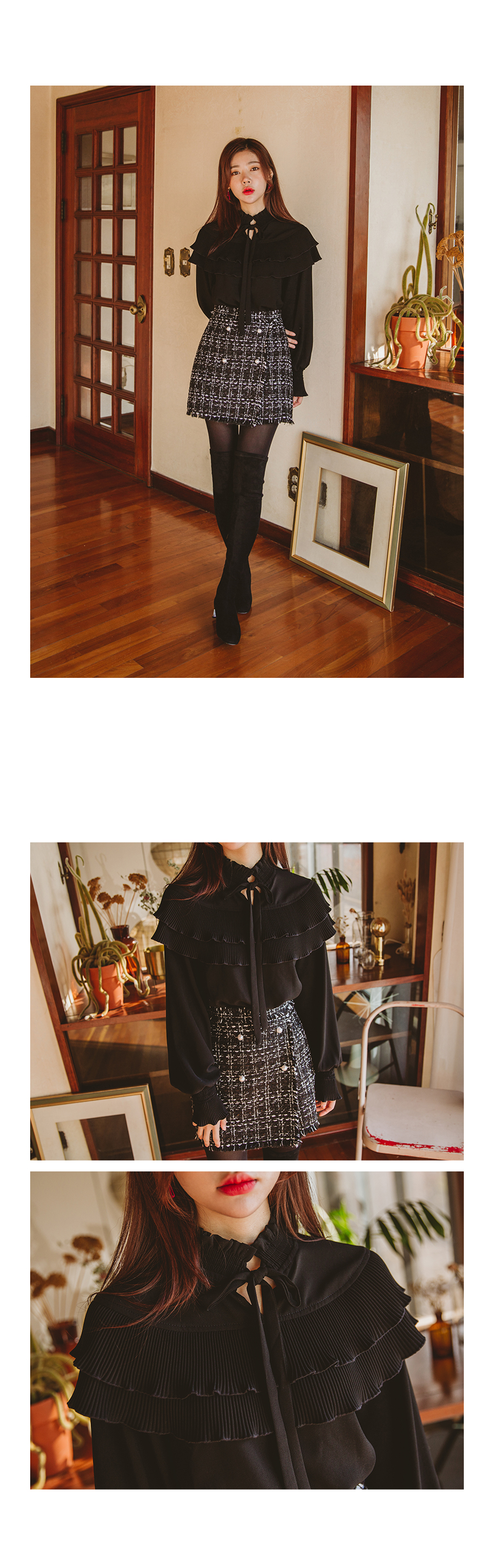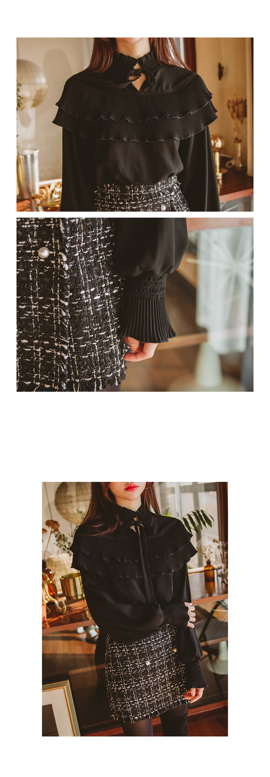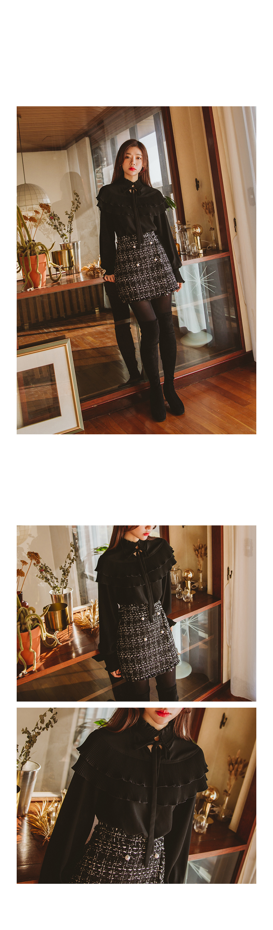 트위드 소재만으로도 충분히 룩에 포인트가 되어주어