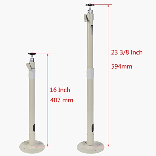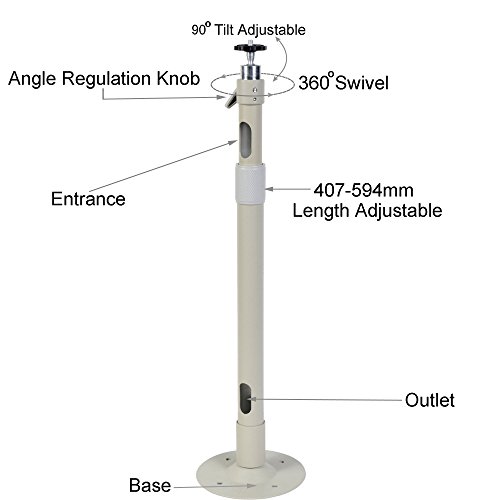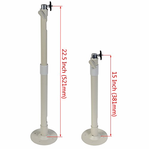 -. Feature : Wall Ceiling mount bracket stand for security camera / Length Adjustable from 15 to 22.5 inch / Tilt 90 degrees, swivel 360 degrees / Cable management through extension pole / Aluminum alloy construction, light weight, heavy duty. Loading capacity 8 lb