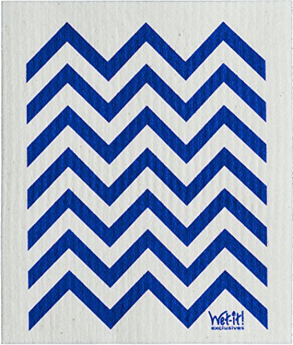 Swedish Treasures Wet-it! Cleaning Cloth, Works Great in Kitchen, Bathroom or Any Room, Reusable & Biodegradable, Navy Chevron