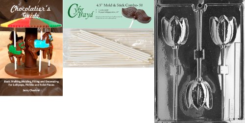 Cybrtrayd 45St50Bk-F037 'Tulip Lolly' Fruits and Vegetables Chocolate Candy Mold with 50 4.5-Inch Lollipop Sticks and Chocolatier's Guide