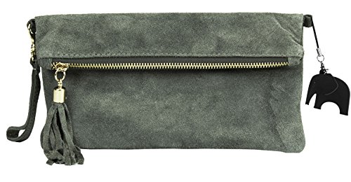 Designer inspired Italian real suede leather wristlet clutch evening bag with detechable long shoulder strap, the bag can also be folded to hold in the plam. Ideal for weddings, parties or evening outsDepartment: Womens