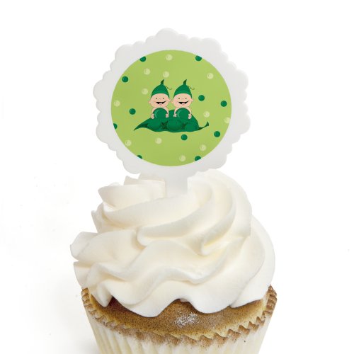 Twins Two Peas in a Pod - Cupcake Picks with Stickers - Baby Shower or Birthday Party Cupcake Toppers - 12 Count