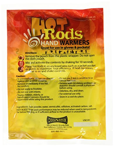 Product DescriptionOccunomix 1106-40D Hot Rods Toe Warmers Heat Packs, warms up within 2 minutes and lasts upto 5 hours. It is a pack of 40 pairs.0