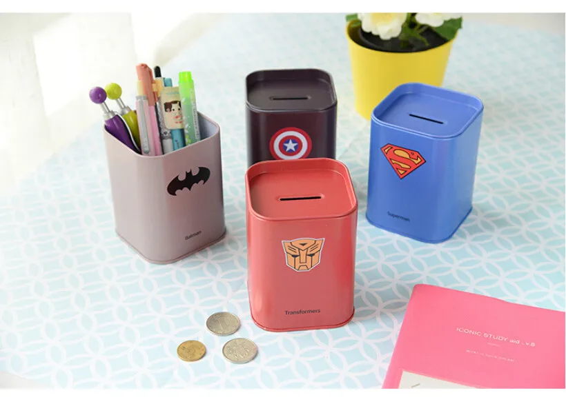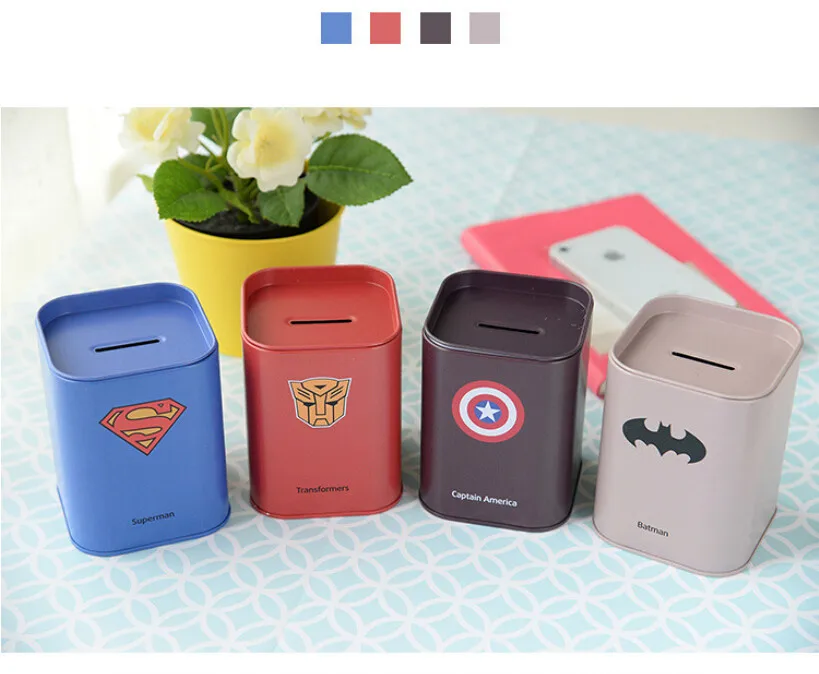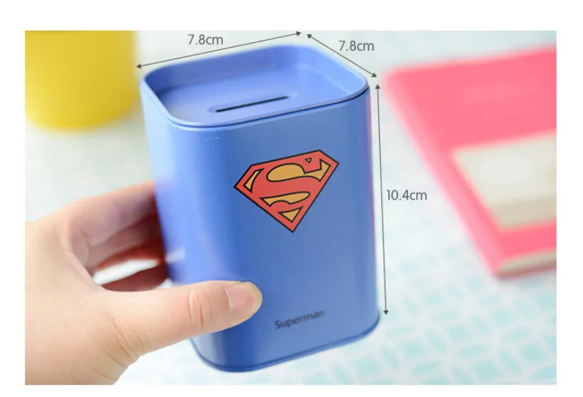 Mini Cute Kawaii Metal Piggy Bank Lovely Spiderman Superman Coin Money Tin Box for Kids Gift Free shipping 207