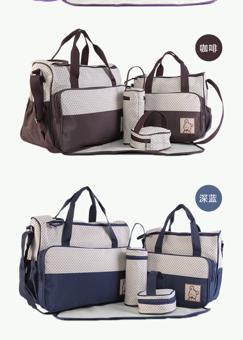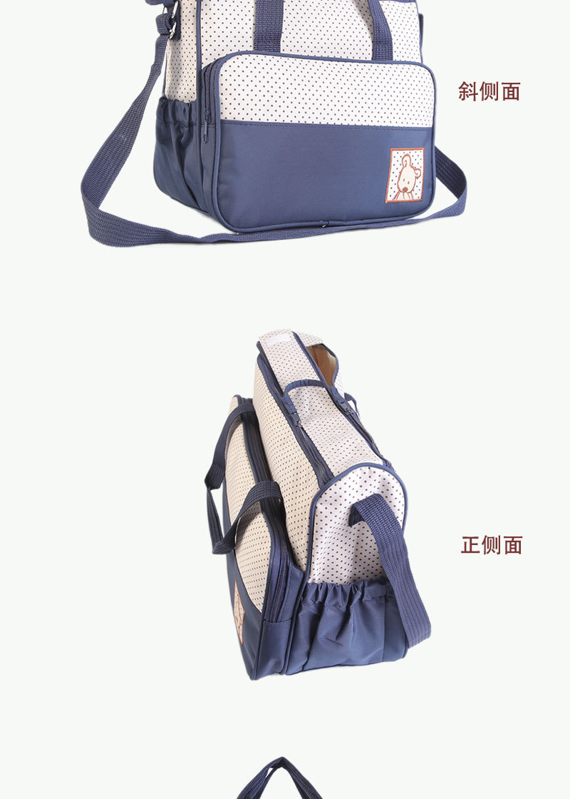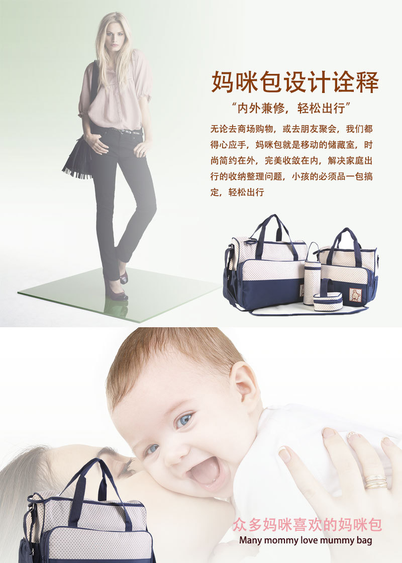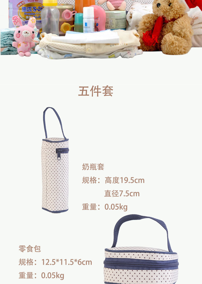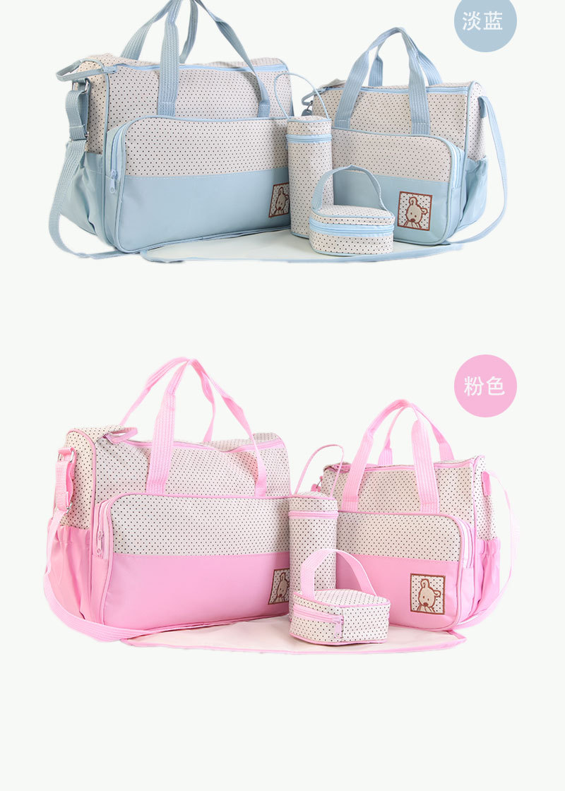 配置:大号妈咪包+小号妈咪包+食品袋+奶瓶袋+隔尿垫