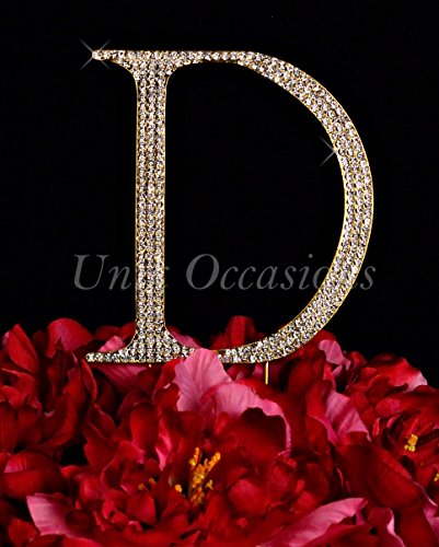 Unik Occasions Collection Crystal Rhinestone Wedding Cake Topper, Large, Letter D, Gold