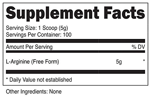 -. Binding : Health and Beauty -. Brand : Nutricost -. Feature : 100% Pure L-Arginine Powder - No Fillers / 1.1 Pounds (500G) for 100 Servings at 5000mg Per Serving / Provides Support For A Healthy Immune System / Healthy Liver Support / Maintain A Good Blood Sugar Level -. IsAdultProduct : 0 -. Label : Nutricost -. Manufacturer : Nutricost -. ProductGroup : Health and Beauty -. ProductTypeName : HEALTH_PERSONAL_CARE -. Publisher : Nutricost -. Studio : Nutricost -. Title : Nutricost L-Arginine - Pure L-Arginine Powder - 5g Per Serving