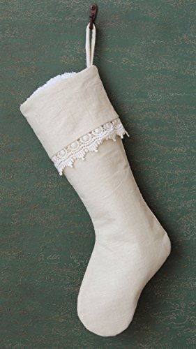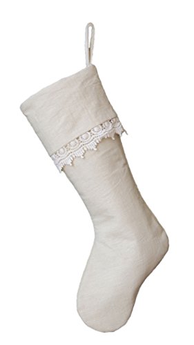 21" Cream Color Cotton & Linen Stocking with Lace Trim