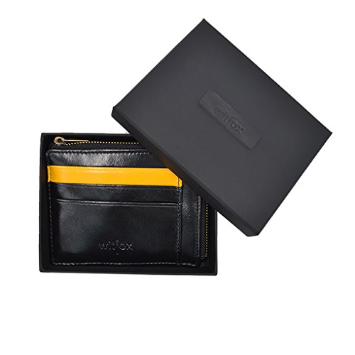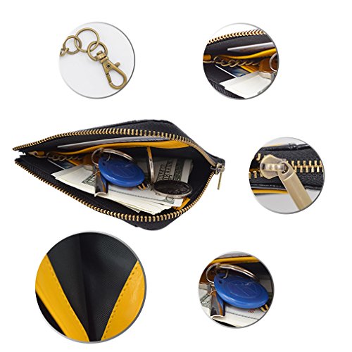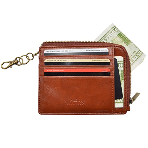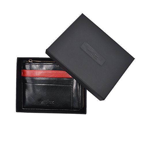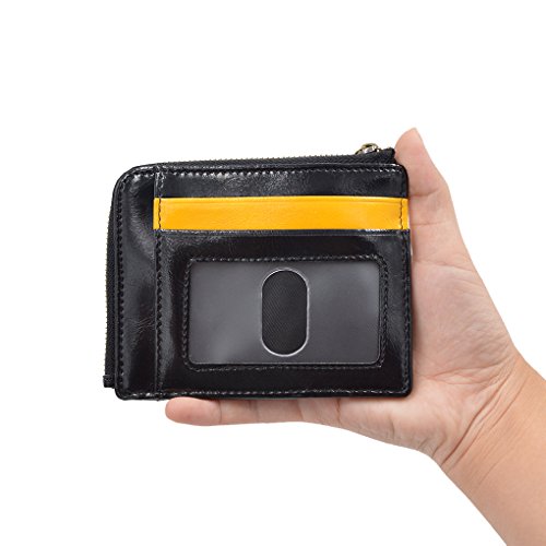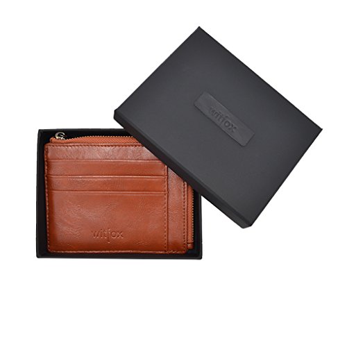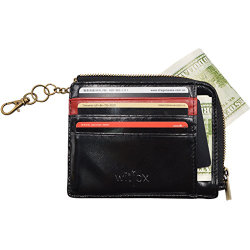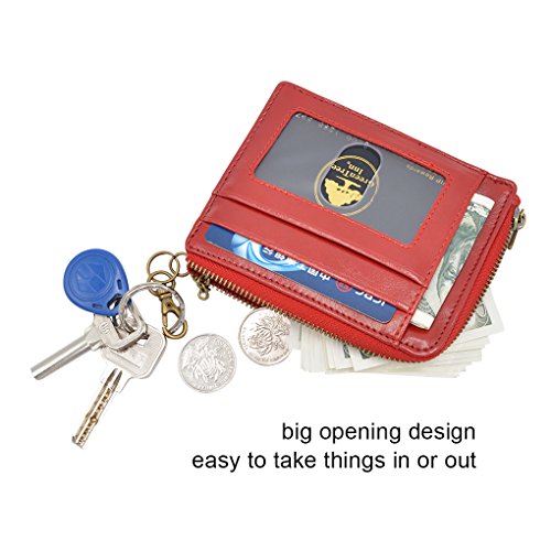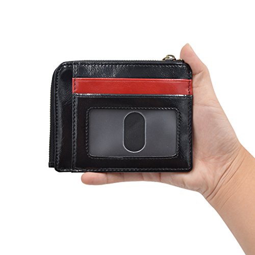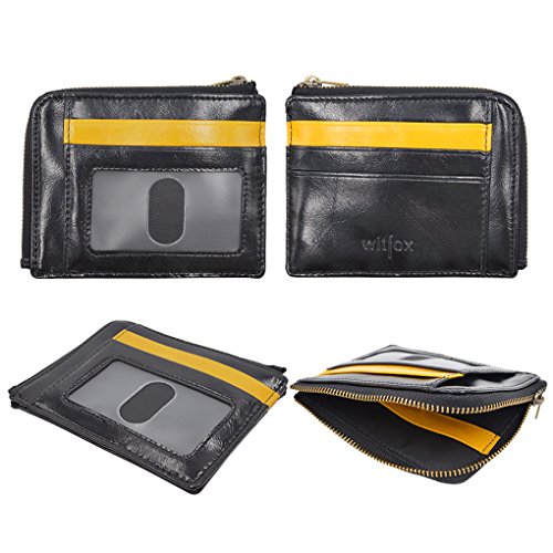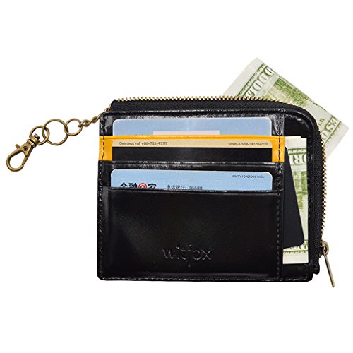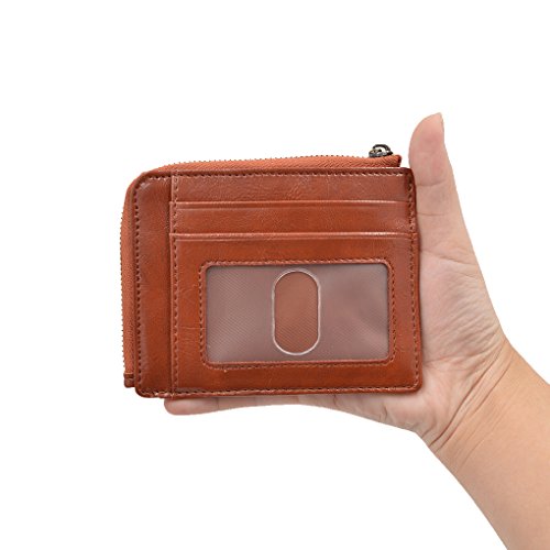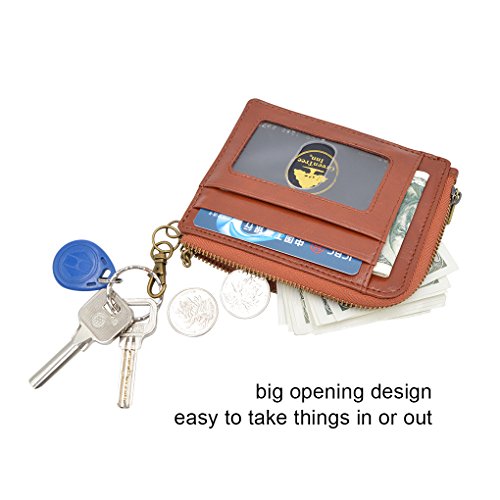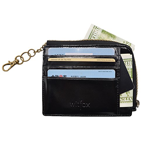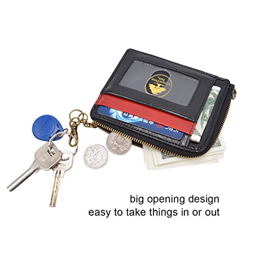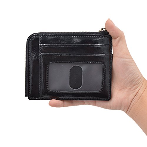 Material: PU Leather Dimensions: 4.7 x 3.7 x 0.6 inches Function: 1 Main zipper cash pocket 4 Credit card slots 2 inside card (coin) slot 1 ID window 1 key chain Special function: RFID signal blocking Package:wallet gift box