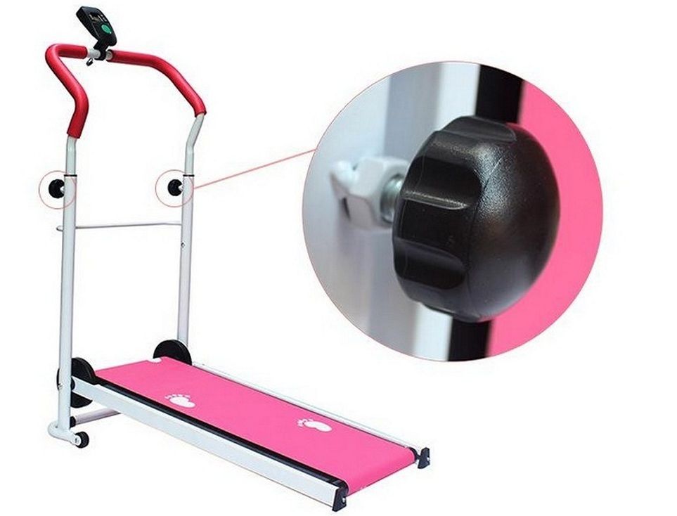• Fat fighters and space-conscious humans reel in energetic enthusiasm with a mini treadmill that comes complete with a fitness monitor that records time, speed, distance, and number of banana split intakes. Small in size, rubber runners have attached wheels for easy portability and are fully foldable, allowing exercisers to store away workout machines in narrow spaces or leave them in attics. While motivated mortals choose hues of pink or blue to adorn exercise equipment, treadmills take on marathon runs towards residential areas and directly to doorsteps.