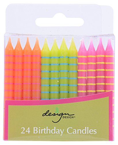 Product Description Celebrate that special day, special milestone, or special someone with this pack of 24 stick birthday candles in 3 bright colors: orange, lime green and magenta. 0