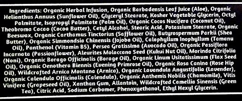- Amazing Nutrients & Botanicals Include Aloe, Sunflower Oil, Coconut Oil, Cocoa Butter