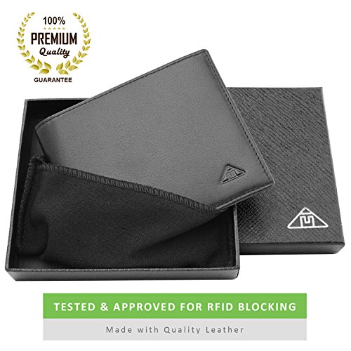 Motion Trend Men's RFID Wallet - Genuine Leather Bifold Black (L)