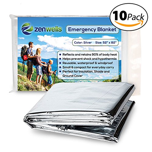 - MYLAR BLANKETS 10 PACK: Zenwells two-sided, reflective, high quality Emergency Foil Mylar Thermal Blankets are designed to protect your body from heat and cold. They are perfect for your auto, camping, traveling outdoors, wilderness, backpacking, hiking, biking, climbing, hunting, fishing, sporting events, marathons, emergency trauma situations, disasters, and accidents.