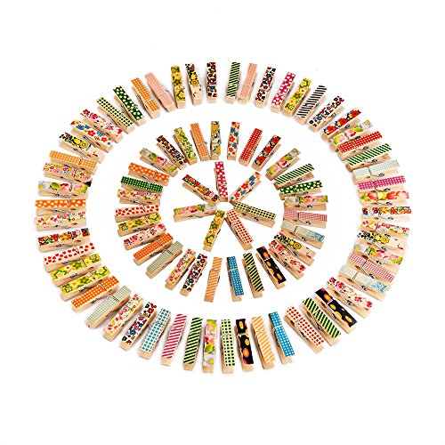 Outus Mini Colorful Wooden Craft Clips Photo Paper Peg, 100 Pieces