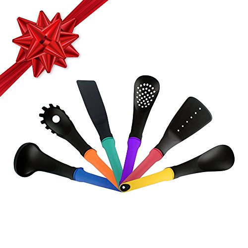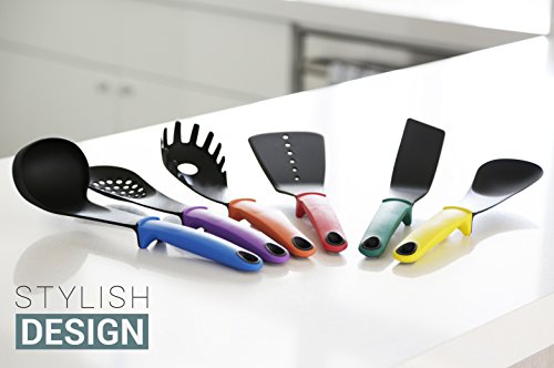 -. Title : Modern Kitchen Utensils Set by Purelife - Fun Multicolored Cooking Tools, Non Stick & Heat Resistant, ideal for Serving Food - 6 Nylon Pcs: Turner, Spatula, Ladle, Skimmer, Solid Spoon & Pasta Server