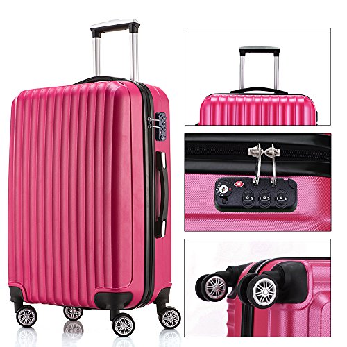 Product Description QA Q:Does this luggage expand? A:No, but the largest one is large enough for your ten-days trip. Q:Can the lock be opened by TSA? A:Yes, these have TSA approved locks Q:Do I need to return all 3 piece if one case has a issue? A:No need,we will refund or send you a replacement of the broken one,contact our service team for help: fochierb2c@gmail.com Q:How does the Warranty work? Like a handle comes off, or a wheel breaks, or else.. What do we do? A:Contact seller directly before returning,here is our email address: fochierb2c@gmail.com . Please provide you order ID and attach the pictures of the broken item in the email.you will get the reply in 6 hours. Q:Is it 4 spinner wheels? A:Yes, 4 wheel spinners on all the luggage and the wheels rotate 360. Q:Will they fit inside each other? for storage A:Yes, they can fit inside each other. Q:What is the weight and dimensions of each piece? A:Approx. Dimension: 20inch 22" x 14" x 9" , 24inch 26"x16" x 11",28inch 29.5"x19"x12" Approx. Weight: 20inch 6.8lbs ,24inch 8.0lbs ,28inch 10.1Ibs Q:How do you change the lock combination from the default 000? A:there is an instructions picture above the detailed page. Q:Does each piece have side handle? A:The smallest one has no side handle,but the big one has. Q:Does the carry on's size meet international flight regulations? A:Yes£¬the 20 inch suitcase (the smaller one) is suitable for carrying onto the plane. More questions,contact seller directly for a answer: fochierb2c@gmail.com 0