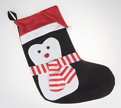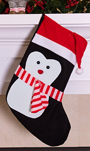 Penguin Soft Plush Cloth Hanging Christmas Stocking | For Kids, Teens, and Adults | Black and White Holiday Decor Theme | Perfect for Small Gifts, Stocking Stuffers, & Candy | Measures 18" Tall