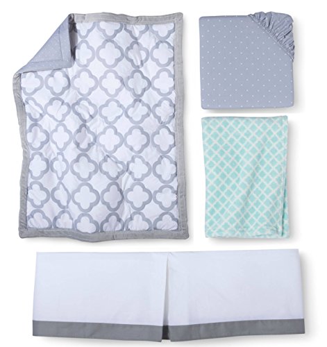 Grey Mint Crib Bedding 4pcs set Baby Bedding Set Nursery With Comforter Blanket
