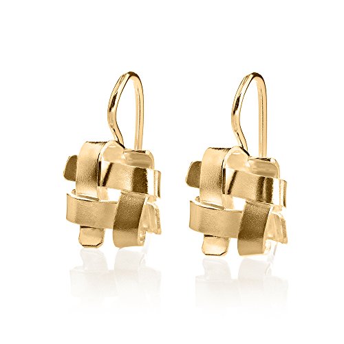 -. Title : 14K Rose Red Gold Square Criss Cross Hanging Geometric Earrings