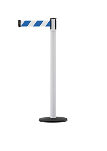 Tensabarrier - 890B-33-32-32-MAX-NO-D1X-C - white post, 2" wide, 13' length Chevron Blue & White belt