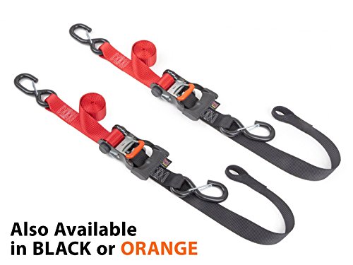 1½" x 6½ft PowerTye Made in USA Ergonomic Locking Ratchet Soft-Tye Tie-Downs with Heavy-Duty Latch Hooks, Red/Black (pair)