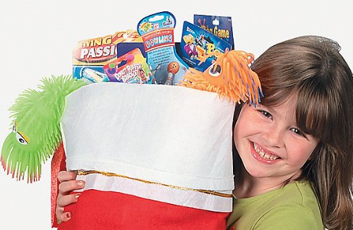- Feature : * measure 45" tall x 16" wide / * red and white FELT stockings (NOT plush) with gold trim / * big enough to fit a small child in! / * stockings are exactly as pictured (the girl holding the stocking) / 1 stocking per order