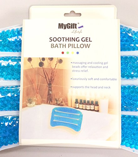 Studio : MyGift Publisher : MyGift Binding : Kitchen Product Description Transform your home bathtub into a relaxing spa with this premium bath pillow. The blue gel that fills this spa pillow is soft enough to be comfortable, yet firm enough to provide plenty of support for your head and neck. Just use the 3 super strong plastic suction cups on the back to attach this bathtub pillow to the wall of your bathtub or hot tub so you can soak and relax in full comfort.