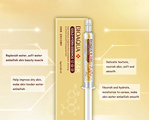 10ml BIOAQUA 24K Gold Foil Skin Care Brand Hyaluronic Acid Liquid Moisturizing Anti Wrinkle Anti Aging Collagen Essence Cream · Item specifics o Use: Face o Item Type: Cream o Gender: Female o Feature: Moisturizing o Ingredient: 24K gold , hyaluronic acid essence o NET WT: 10 ml o Suit for: All type of skin o Feature: Moisturizing,oil-control,anti wrinkle o Shelf life: 3 years o Brand Name: BIOAQUA · Brand name: BIOAQUA 24K gold hyaluronic acid essence concentrate 10 ml Product efficacy: Hydrating , activating nourishing , moisturizing , repairing , shrink pores , oil-control, anti aging , anti wrinkle ,whitening. Add moisture to nourish the skin, smooth evenly moist and transparent to show beautiful skin Usage: Step 1: After cleaning the skin, and dry skin surface moisture Step 2: Unscrew the lid, gently push the needle will push the right amount of product in the palm Step 3: Gently massage until absorbed Step 4: After using the skin tender, feel comfortable Package contents: 2 x BIOAQUA 24K gold hyaluronic acid essence concentrate 10 ml