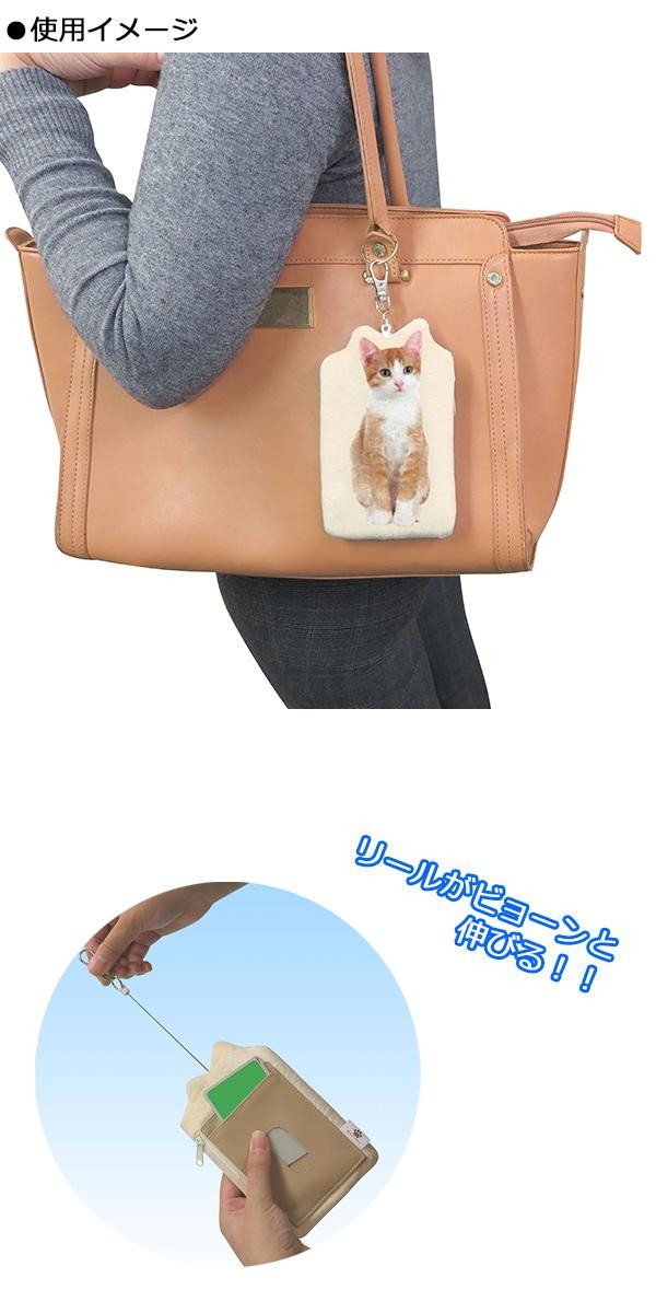 | リールがビヨーンと伸びて改札に楽々タッチ!!カードポケットだけではなく、ファスナーポケットが付いているので小物も入れられます。カバンに付けられるフックも付いています。 |