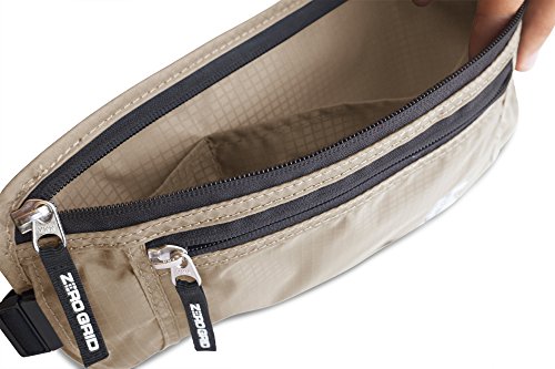 -. Title : Zero Grid Money Belt w/RFID Blocking - Concealed Travel Wallet & Passport Holder