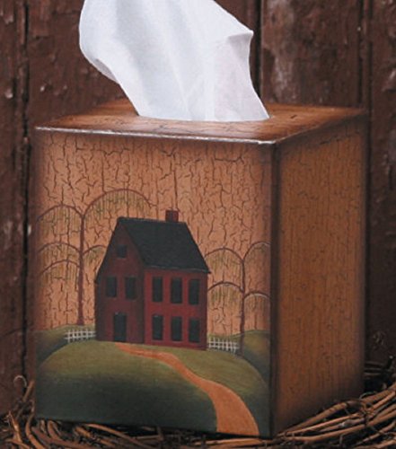 Tissue Box Cover - Primitive House / Home with Weeping Willow Tree - Perfect for Primitive and Country Decorating