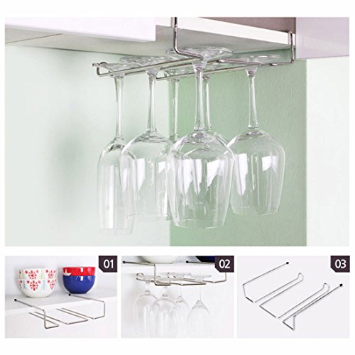 Studio : GARASANI Publisher : GARASANI Product Description Made of durable, molded steel with chrome plating, the Useful. below-cabinet hanging stemware rack is a convenient and practical addition to your kitchen. it holds up to 6 hanging stemware pieces, with convenient placement and removal. It is easy to remove screws and easy to remove. 0