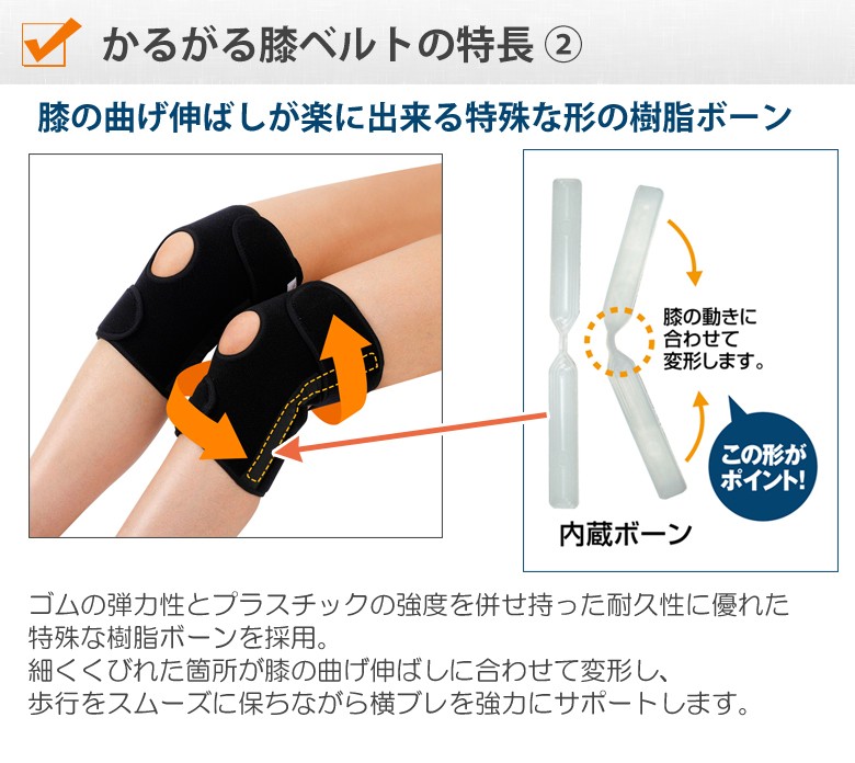 ●膝の曲げ伸ばしが楽に出来る特殊な形の樹脂ボーン