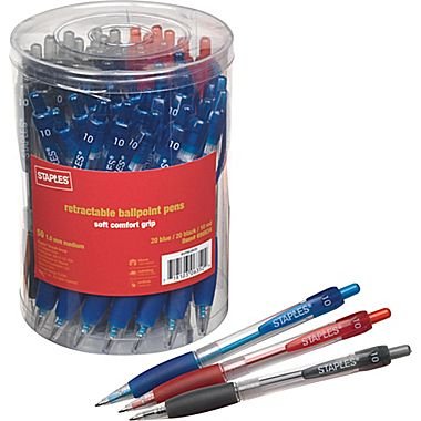 -. Title : Staples Retractable Ballpoint Pens, Medium Point, Assorted, 50/Pack