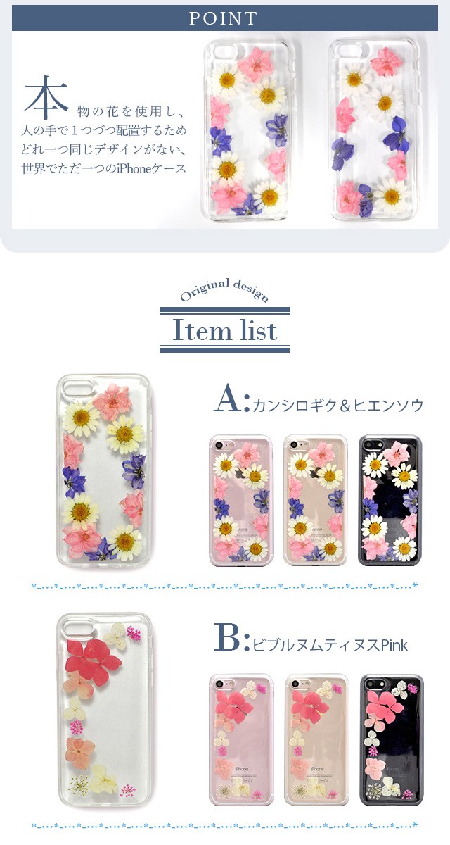 ■対応機種iPhone8/7【!】購入前にご確認ください※同じシリーズでも種類がたくさんございますので対応機種の型番にお間違いがないよう、ご注意下さい。対応機種のお間違いによる返品、交換は受けかねます。予めご了承下さいませ。■素材PUレザープラスチック(ポリカーボネート)■ iPhone アイフォン あいふぉん アイホン あいほんiPhone8 アイフォン8 8 アイフォン8ケース 8ケース アイホン8ケース iPhone8ケースiPhone7 アイフォン7 7 アイフォン7ケース アイフォンケース7 iphone7ケース アイホン7ケース 7ケース iphone7オシャレケース アイフォーン7ケース セブン■ ソフトケースTPUクリアケース 透明 クリア■コラボーン オリジナルおしゃれ 女子 レディース 女の子 大人かわいい 大人女子 大人 おしゃれかわいい 花柄押し花■その他iphone7 iPhone8 ケース【押し花 押花 ケース TPU ソフトケース 透明 クリア 花柄 iphone7 iPhone8 ケース フラワー ドライフラワー カラフル リアル スマホケース スマホケース 携帯ケース iphone7 iPhone8 ケース おしゃれ かわいい