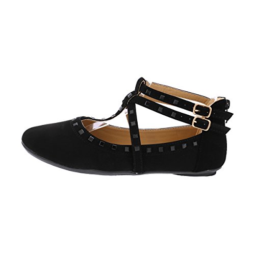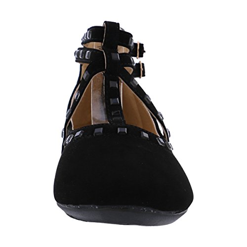Product DescriptionSynthetic upper in black Two adjustable ankle straps buckle up closure Rhinestone studs decorating Cushioned insole and footbed Durable manmade outsole0