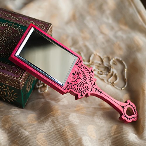 ExclusiveLane Wooden Engraved Handheld Mirror From "Royal Queen Collection " -Hand Mirror Handheld Vanity Mirror Decorative Mirror Cosmetic Make Up Mirror