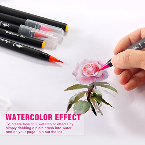 - ❀ WATERCOLOR EFFECT: These marker brush pens can create beautiful watercolor effects by simply dabbing a plain brush into water, and on your page, thin out the ink