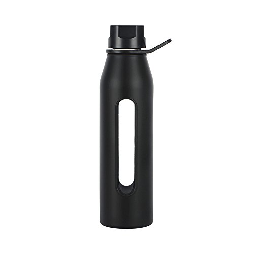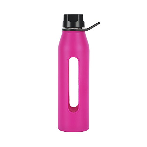 This Takeya Classic Water Bottle features a high quality glass bottle with a wide mouth, and is encapsulated by a silicone jacket that provides a nice grip, as well as protection for the bottle. The sleeve has a see-through window for checking the liquid level. The twist-off cap is airtight and includes an easy carry loop. This H2O bottle provides healthier way to drink, and eliminates metallic or plastic tastes, and leaching from toxic plastics. This bottle holds 22-1/2 ounces, is dishwasher safe, and is available in several colors.