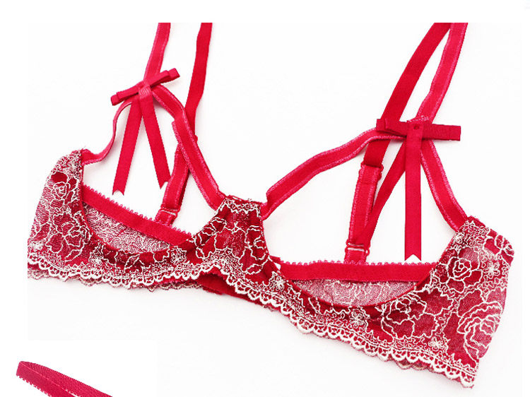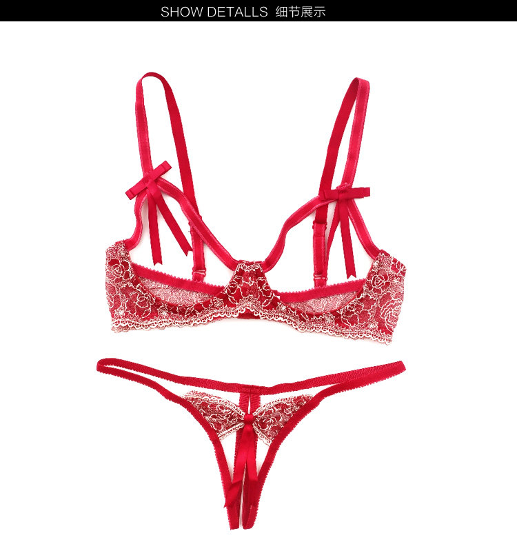 套装情趣文胸聚拢内衣女露乳血滴子极度诱惑性感蕾丝胸罩开档内裤