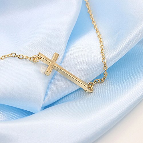 -. Title : Adorable Woman 925 Sterling Silver Sideways Horizontal Cross Pendant Necklace