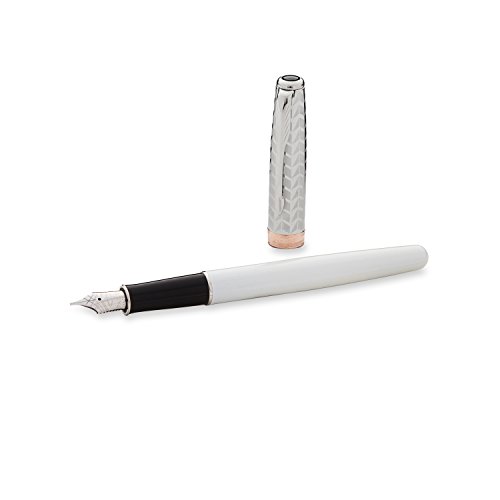 -. Title : Parker Sonnet Fountain Pen, Medium Point, Metallic Pearl with Chrome Trim (S0947320)