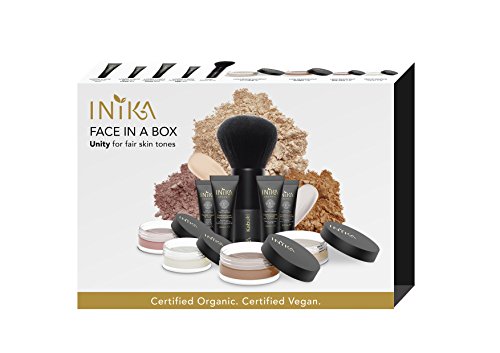 Inika Face In A Box is the perfect Inika starter kit or travel collection. It includes Inika Mineral Foundation Powder (3g) Certified Organic Liquid Mineral Foundation with Hyaluronic Acid (10ml) Mineral Bronzer - Sunkissed (Full size: 3.5g) Certified Organic Pure Primer with Hyaluronic Acid (10ml) Certified Organic Natural Perfection Concealer (4ml) Mineral Setting Powder (0.7g) Mineral Blush - Rosy Glow (0.7g) Full Size Vegan Kabuki Brush Eco-friendly Drawstring Makeup Bag The perfect way to get started with makeup that is actually good for you, the new and improved set offers an entire collection of cult complexion-boosting mineral makeup heroes and is available in four different shade selections for varying skin stones. Each set has been tailored to nurture and enhance a range of skin tones. Inika's Face in a Box offers the choice of four Mineral Foundation shades to suit most skin tones. About Inika: winner of multiple beauty awards, Inika is the world's first healthy makeup brand. Our products are 100% natural and certified organic. We only use the finest botanicals and minerals, chosen for quality, tested for purity and checked for safety. Our products are cruelty-free, toxin-free, vegan and environmentally friendly. Our philosophy to create beautiful healthy, high performing makeup that gives you a flawless look. They feel luxurious to use and leave you with radiant, glowing results. Your skin will love them and so will you. We believe that beauty stems from health. Just as you care about what you put into your body, care about what you put onto it. With us you can always be confident that you are being good to yourself, looking your best - all without compromise.Feature