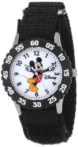 Keep track of time with this officially licensed disney stainless steel kid's time teacher watch by ewatchfactory on your wrist. The timepiece displays artwork from your favorite disney character on the face, and is designed with labeled "hour" and "minute" hands to help young ones learn how to tell time. This classic watch has a polished and matte steel finish and a precision japan movement for accurate time keeping and a 1 year manufacturer warranty.Feature